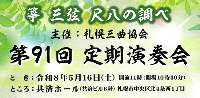 - 札幌三曲協会第86回定期演奏会の情報をアップ>